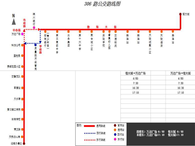 萬達(dá)廣場(chǎng):6:50、7:30/16:30、17:10。