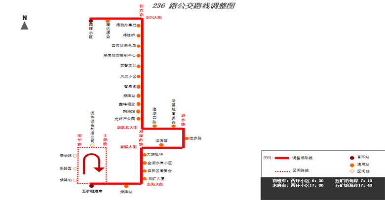 澄湖西路沿線“乘降站”(營口匯豐工程機械制造公司)、進步路沿線“進步路”雙向站位、澄湖西路沿線“大族冠華”、“金湖水岸小區(qū)”、“自貿(mào)區(qū)管委會”、“五礦大廈”雙向站位,共計6處。(附:236路公交路線調(diào)整圖)